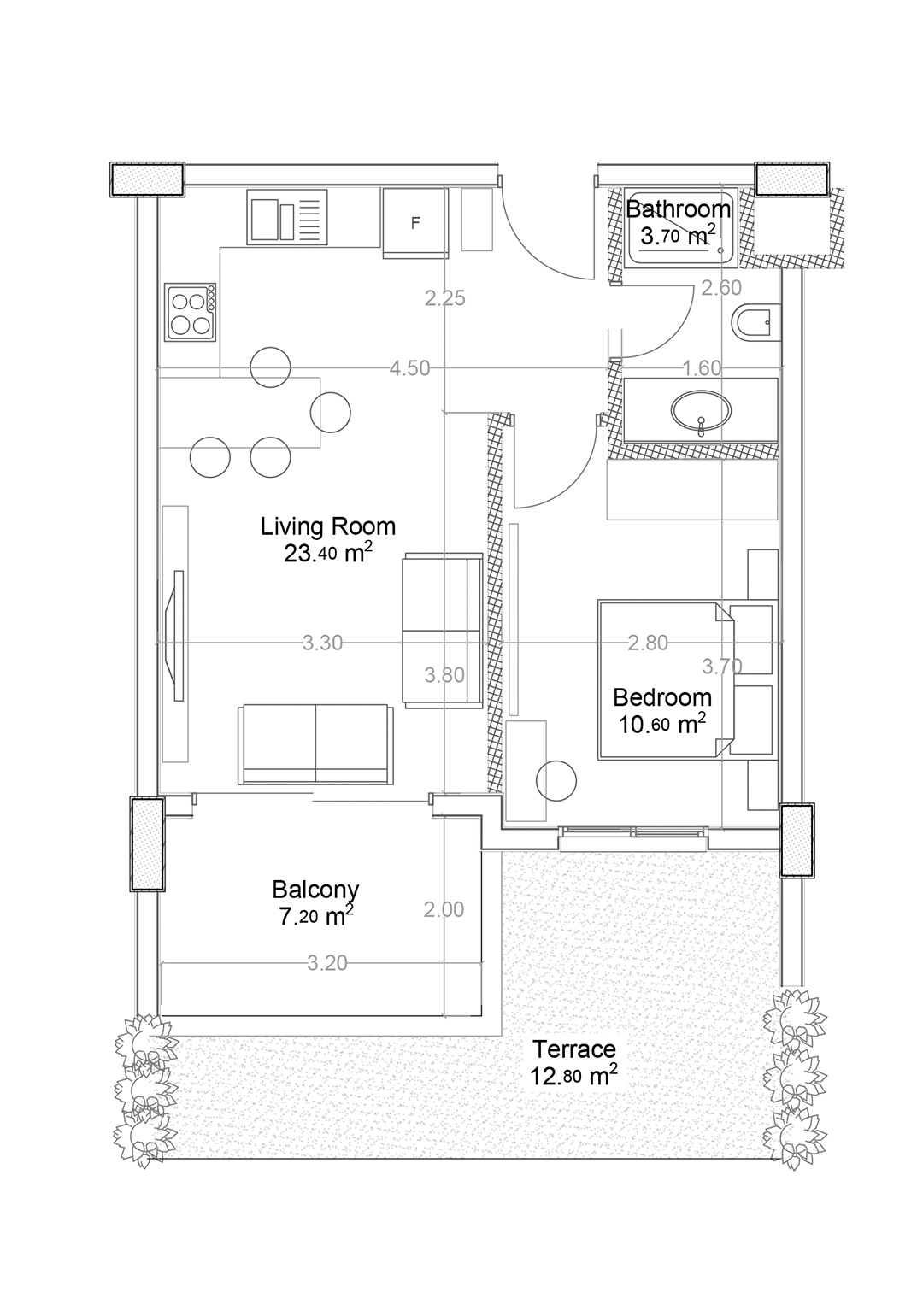 Yekta Green Life Gazipasa Residence блок A планировка №6 63.40 м² 1+1